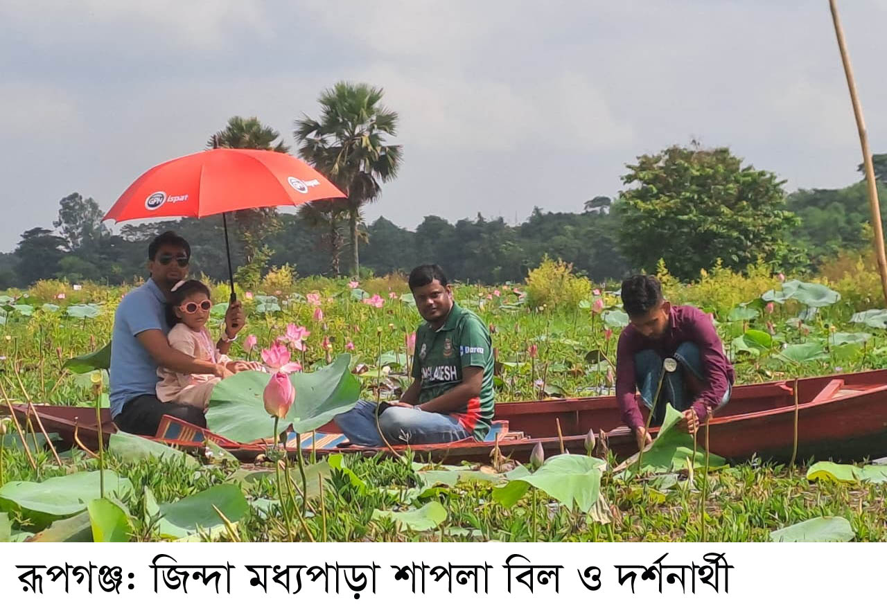 নারায়ণগঞ্জের রূপগঞ্জে জিন্দা বিলে লাল শাপলা আর পদ্ম ফুলের সমারোহে তৈরি হয়েছে মনোমুগ্ধকর নৈসর্গিক পরিবেশ। চলতি মৌসুমেও রয়েছে লাল শাপলা আর পদ্ম ফুল। শীতের আগমনী স্নিগ্ধতায় কচুরিপানা ও সবুজ পাতায় বেষ্টিত বিলের জলে ফুটেছে অসংখ্য লাল শাপলা আর পদ্ম। আগষ্ট থেকে নভেম্বর পর্যন্ত উপজেলার জিন্দা বিলে সবুজ পাতার ফাঁকে লাল শাপলা আর পদ্মের সমারোহ প্রকৃতি ও পরিবেশকে করে সৌন্দর্যমন্ডিত।
