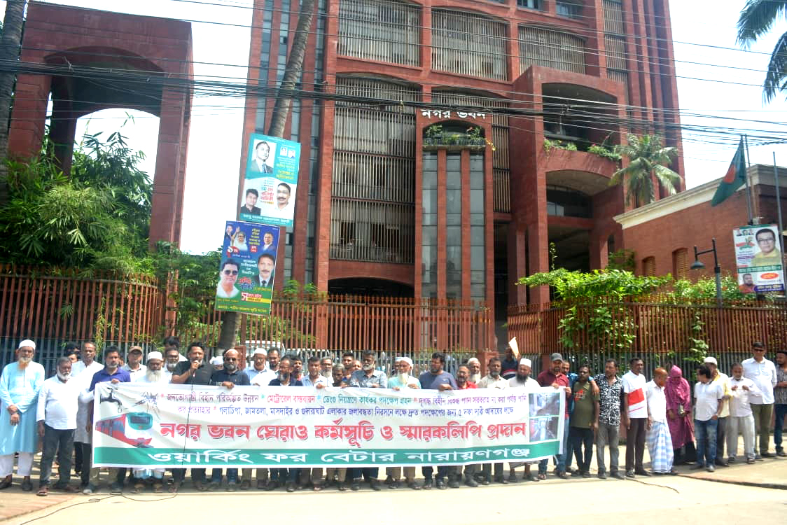 বুধবার (৮ অক্টোবর) দুপুরে নারায়ণগঞ্জ সিটি করপোরেশনের সামনে এই কর্মসূচি পালিত হয়।